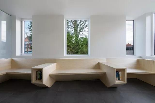 為了緩解這樣的焦慮,很多新型診所將等候區(qū)的設(shè)計(jì)變成了類似家庭圓桌、咖啡廳一般,讓病人與家屬能夠在這里面對面而坐,可以隨意溝通,也可以安靜等待,至少在設(shè)計(jì)層面上提供了一個平等且隨機(jī)的樣板,讓等待的時間好過一些。考慮到病情嚴(yán)重程度不同,以及交流的選擇權(quán)上,另外一種設(shè)計(jì)思路是在連續(xù)的長椅中以島狀書柜或其他平臺隔開,病人可以根據(jù)自己需要選擇溝通,這一點(diǎn)在比利時的馬爾德海姆診所上有所體現(xiàn)。