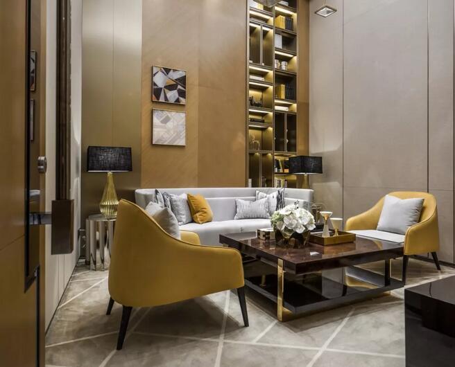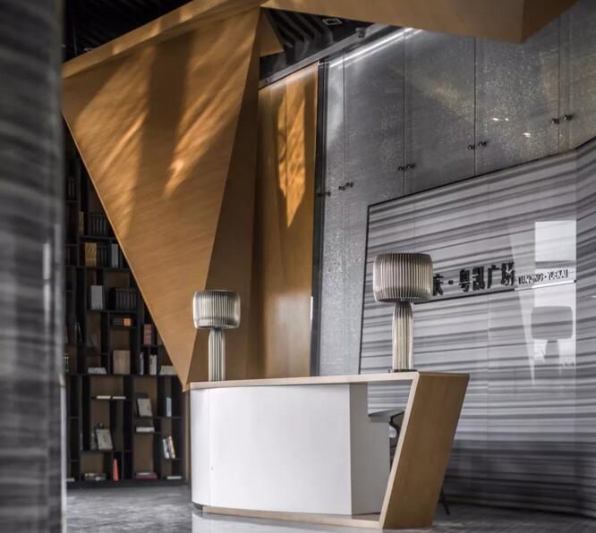 洽談區(qū)所打造的開放式圖書館,讓銷售中心更增添了一絲人文氣息。以點帶線,方中見圓,貫穿著整個洽談區(qū)的設計。黃辰猛所構想的是用最簡單的家具和色彩,來撐起整個空間的質感,最大限度的弱化軟裝的復雜感,讓建筑本身的魅力最大限度的釋放。