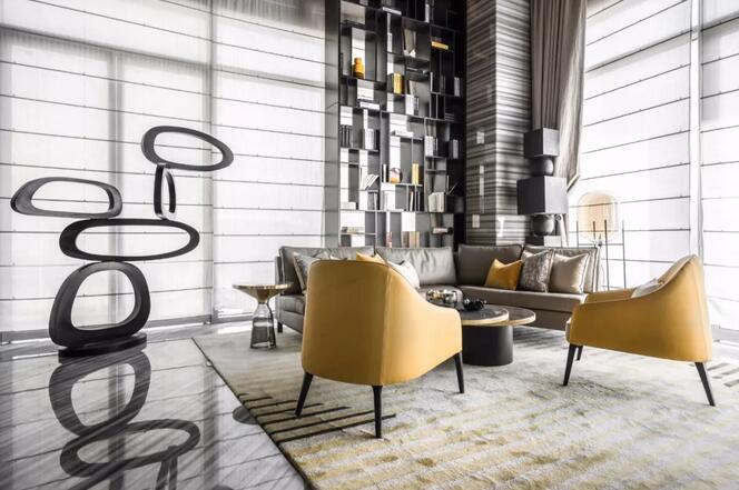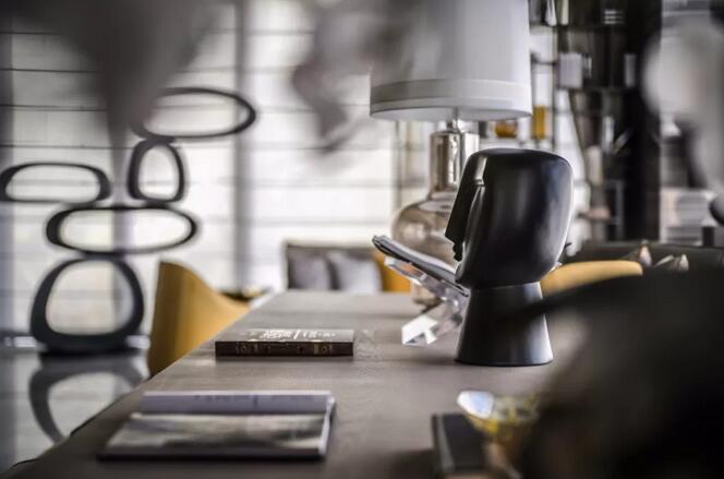 “大空間的框架是非常重要的,尤其是極具美感的空間,破壞它還不如什么都不放?!痹谟惭b極具張力的線條里,黃辰猛將其集中概括為幾何解構美學。簡單的東西當然要配簡單的東西才好,豎配橫,方配圓。所以在軟裝的視覺上,極力簡化所有的線條,讓空間從上到下都保持點線面最基礎的關系。