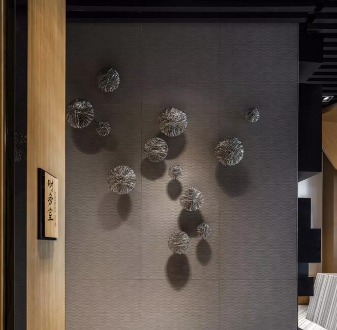 VIP獨在強調私密性和彰顯身份的待遇。金字塔型的吊燈給空間增添了不一樣的視覺沖擊。掛畫另辟蹊徑的方式也在視覺上給人不一樣的構成感。雖然整體的風格沒有再延續(xù)公區(qū)的樣式和形態(tài),但用簡單的幾何構成關系設計卻始終是我們的主題。