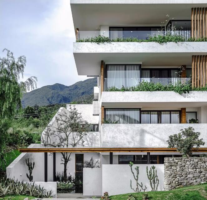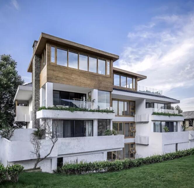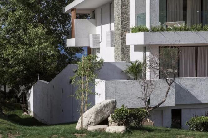 首層以公共空間為主,一到三層則是客房。每間客房都設(shè)計(jì)有巨大的露臺(tái)和落地窗,最大程度將蒼山洱海的絕妙景觀收入房?jī)?nèi)。露臺(tái)向外出挑,各層之間相互錯(cuò)落,為立面增添些許變化,也令整個(gè)建筑顯得更為輕盈。