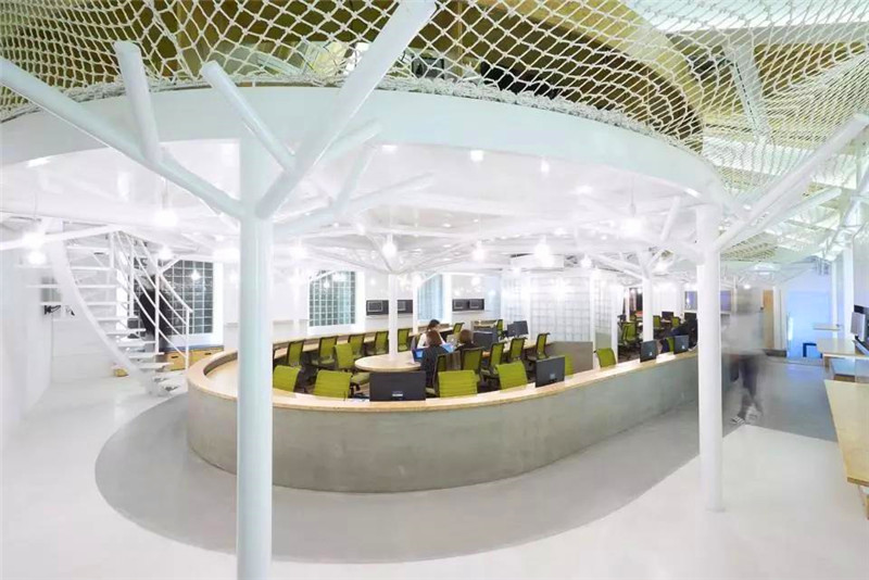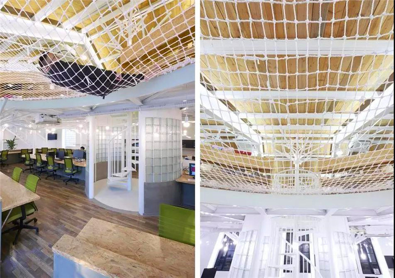 通過一個旋轉的樓梯就可以走上休息的蹦蹦床了。