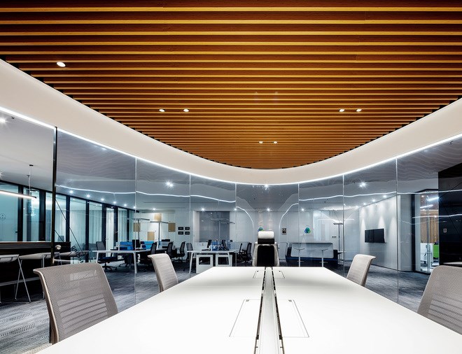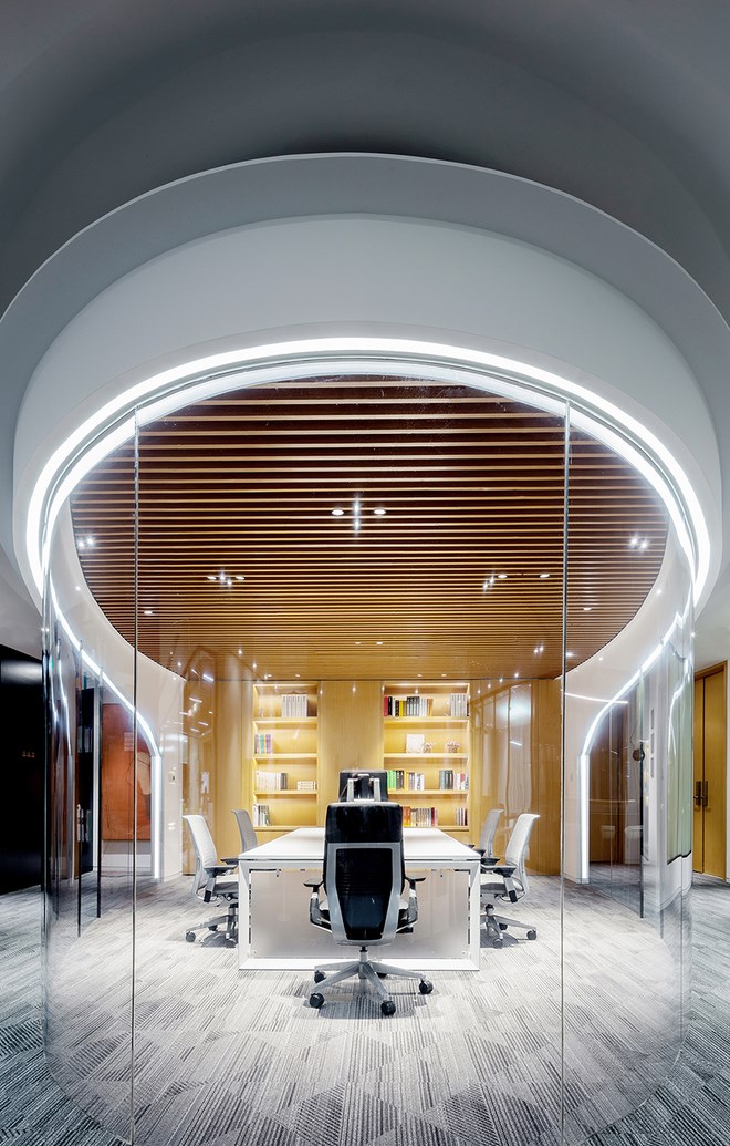 建筑是凝固的音符。正如空間以表達其與使用者的關系來回應建筑本質,設計以多樣探索賦予空間更大的想象力,如同音樂旋律,它也有高低起伏的變化。峻佳設計以充滿科技感的設計語言,呼應了現代人對于未來辦公的想象,讓空間與時間相互交融。