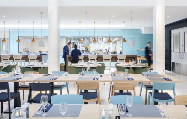 Fokkema & Partners設計的這個校園,為學生們提供了一個設施齊全光線明亮的學習環境,讓他們可以在充滿活力的地方盡情的學習知識鍛煉本領。在中央大廳一層咖啡館的周圍,有一些就餐用的小包廂。這些包廂都具有不同的風格和獨特之處,共同之處是無論是從哪個包廂里,都能看到食物準備室里的一切活動。入口處的遮陽篷,更是讓那個大大的咖啡館顯得更有特點。