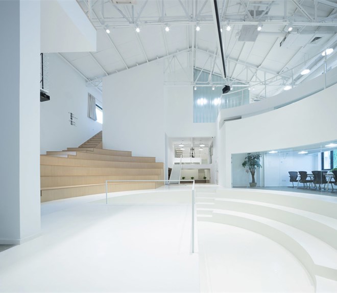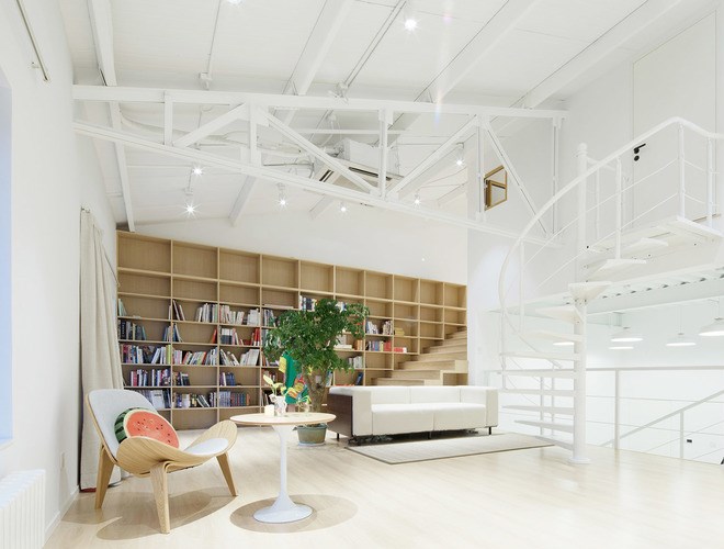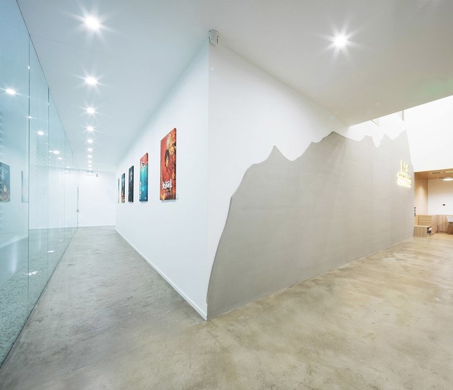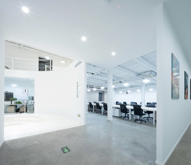 彼岸天總部辦公室位于吉里(北京)國際藝術(shù)區(qū),其成名作中國動畫電影《大魚海棠》2017年于第15屆布達佩斯國際動畫電影節(jié)斬獲最佳動畫片。吉里(北京)國際藝術(shù)區(qū)內(nèi)聚集了各類影視產(chǎn)業(yè)企業(yè),大魚海棠的新辦公空間選定在9米層高的一座老廠房內(nèi)。新空間保留了老廠房的屋架和外立面的圍護結(jié)構(gòu),在保持老廠房記憶的同時,重新設(shè)計了部分辦公空間的外墻,以及全部門窗和基礎(chǔ),植入新的鋼結(jié)構(gòu)進行功能體塊分割,達到新與舊的共融和碰撞。整個園區(qū)是灰蒙蒙的老廠房,而新空間外墻選用白色基調(diào)一直延伸到室內(nèi),搭配部分木材質(zhì)感,給予通透和純凈的感受。