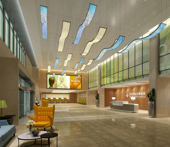 醫院整體運用海濱城市特有的碧海、藍天、陽光等大自然的元素和色彩烘托出輕松、浪漫溫馨的氛圍。