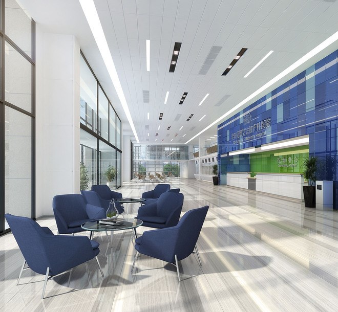 這兩種顏色都屬于可以給患者帶來安靜,平穩(wěn)的心情的顏色,但這兩種顏色又是屬于冷色系,我們不能讓本來就冷冰的醫(yī)院再添加太多冷色系的元素,空間需要有動感,由暖色系來作為主色調(diào)。