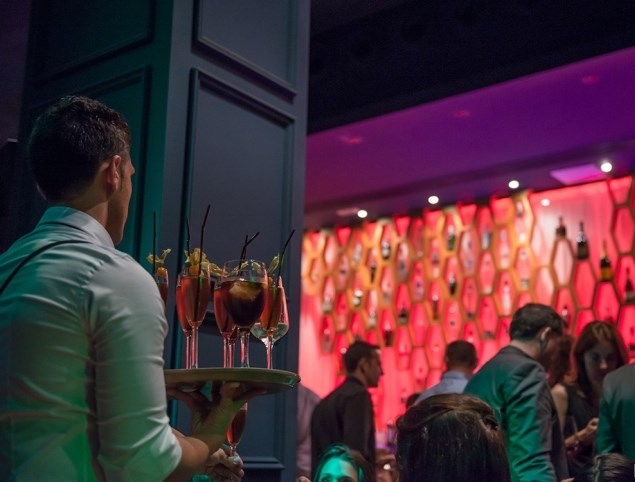 設計機構(gòu)DVAZQUEZ工作室受品牌委托,并在兩個月的時間內(nèi)重新做了內(nèi)部設計。酒吧里的每一件家具都被以中元紀風格,經(jīng)過獨特的設計。木頭,皮革,銅和訂制的熱帶風格墻紙強化了酒吧的格調(diào)。