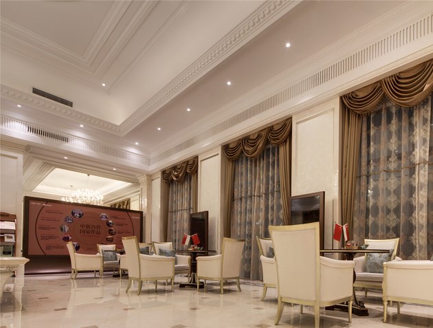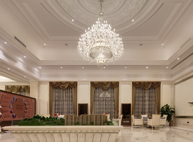 售樓處的造型是在傳承這樣的的一種理念,利用現代的半透明的金屬幕簾這樣一種綠色環保材料形成內外空間的在視覺上和空間上內斂而優雅的過渡,半透明材料所呈現的若隱若現的視覺模糊傳遞著層次豐富的空間縱深感。