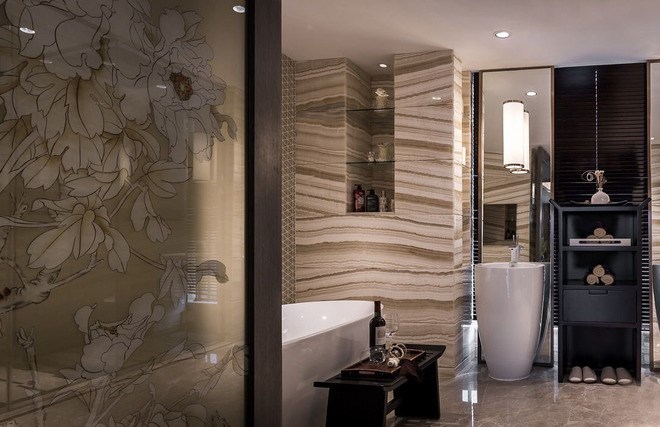 山水的抽象意念,對比中體現出對細節的推敲和尺度的精準把控,既和室外的風景遙相呼應,又為客人帶來舒適而尊貴之體驗。我們通過循空間之自然、理功能之關系、揉傳統之元素,最終呈現出一個立體、豐富而有蘊含中國傳統文人士大夫氣質的山水之所。