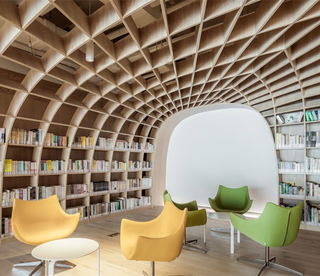 在大理石的泛會所里植入了一片知識的森林,希望居民們被溫和地包裹沉浸在這個溫暖人心的軟性環境,使居住者在此能卸下外界物質忙碌的包袱,回歸家庭鄰里親近往來的輕松氣氛,愿意主動地于同在一個社區但總是彼此錯開的鄰居結識,促進鄰里之間的交流。由此而激活了鄰里社交的潛力。