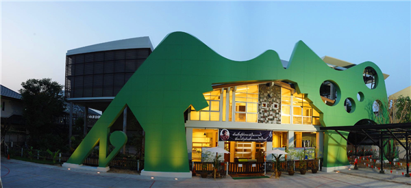 本案設計以形狀為設計元素,從外觀到室內以彩色幾何圖形貫穿整個設計,幾何圖形的概念源于數學中的幾何學,辭海中關于幾何學的定義是:“研究空間圖形的形狀,大小和位置的相互關系的一門科學”,而幾何學又是圖案學的一個分支。