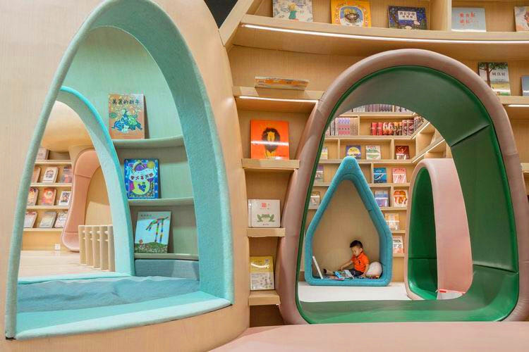 書架與書架之間都可以互通。在這個空間里孩子們充分發揮想象力,在閱讀的時候可以隨意穿行,隨意在就讀區閱讀。