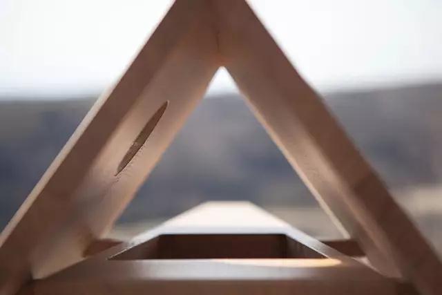 為了讓觀鳥愛好者可以更方便地欣賞到鳥兒們的全貌,雙人設計組合 ODDO Architects 借鑒了秀場的 T 臺設計,打造了一個可以讓小鳥們“走秀”的鳥屋。金字塔形的小屋內設有一個飼料槽,一側的木墻上還配備了一扇圓形的小窗戶,供“模特”們一窺自己的“仰慕者”。